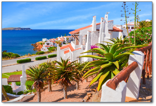 Die äusserst hübsch anzuschauenden Häuschen im menorchinischen Baustil sind ein wirklich gelungener Blickfang für diese Gegend direkt am Meer oder auch im Landesinneren. Die dazu gepflanzte Botanik ist mehr als stimmig und unterstreicht die harmonische Bauweise.